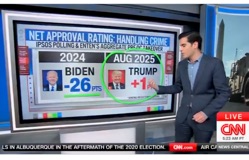 [RedState.com] CNN data guru Harry Enten said the network's latest poll about President Donald Trump's handling of Crime blows up the Democrats because it shows Americans are "far more hawkish on crime" than they might want to admit. In a clip posted on X on Thursday, Enten stands in front of a graphic that reads "Trump's net approval-Handling of Crime. The poll showed that in March of 2024, America's view of Trump's handling of the issue during his first term was -13 points. However, those numbers have flipped with the August 2025 poll showing Trump plus 1 point during his second term... Subscribe for free to Breaking Christian News here Click Here to read, and watch the video. (Screengrab image: via CNN video)