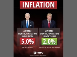 [Newsbusters.org] Despite rising in August, annual inflation has now remained below the 3.0% level recorded in President Joe Biden's last month in office in every month of President Donald Trump's second term, data released Thursday by the US Bureau of Labor Statistics (BLS) show. (Screengrab image: via MRC)