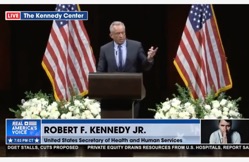 [VigilantFox.com] The Kennedy Center overflowed with emotion Sunday evening as mourners honored Charlie Kirk... Thousands showed up, many waiting in long lines outside the hall to hear tributes from Karoline Leavitt, HHS Secretary Robert F. Kennedy Jr., Speaker Mike Johnson, DNI Tulsi Gabbard, Rep. Anna Paulina Luna, and others, in an historic gathering paying tribute to the one-and-only Charlie Kirk. ... RFK Jr: "He ended up being the primary architect of my unification with President Trump..." Subscribe for free to Breaking Christian News here Click Here to read and watch the videos. (Screengrab image: via Real America's Voice)