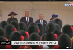 [Breitbart.com] President Donald Trump and First Lady Melania Trump arrived at Windsor Park aboard Marine One on Wednesday afternoon, where they were greeted by the King and Queen before climbing aboard a line of horse-drawn Royal coaches for the ride to the historic castle. Donald Trump grinned broadly as he was greeted by William and Kate, the Prince and Princess of Wales at the steps of Marine One after it touched down in the walled garden at Frogmore on Wednesday. Minutes later, President Trump and First Lady Melania were met by the King and Queen, for the first formalities of this week's State Visit to the United Kingdom... Subscribe for free to Breaking Christian News here Click Here to read and view photos. (Screengrab image: via News 18 /YouTube)
