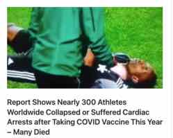 A recent report on the number of young athletes who've suffered cardiac arrests, and have collapsed with the condition on the field of play, in just the last year, is distressing to say the least. (Screengrab image) According to research by OAN, "between March 2021 and March 2022, 769 athletes collapsed during competition, due to cardiac-related episodes—many of them died." "This wave of heart issues is unprecedented, to say the least. Never before have we seen young, healthy, world-class athletes experiencing heart issues en masse like this. It has never happened, ever. Furthermore, the timing of this sweeping phenomenon could not be more relevant, coinciding perfectly with the rollout of the experimental Covid-19 vaccines," writes Julian Conradson in The Gateway Pundit, adding that "In December nearly 300 athletes reportedly collapsed or suffered cardiac arrests after taking the COVID vaccines." The report notes the average age is just 23-years-old. GoodSciencing.com details that in years prior, the numbers weren't even close: The International Olympic Committee in Lausanne, Switzerland, studied documents from international data banks from 1966 to 2004. Those documents indicate 1,101 sudden deaths in athletes under 35 years of age, an average of 29 athletes per year, the sports with the highest incidence being soccer and basketball. (NIH Document) A study by Maron on sudden death in US athletes, from 1980 to 2006 in thirty-eight sports identified 1,866 deaths of athletes with cardiac disease, with a prevalence of hypertrophic cardiomyopathy. 2005 to 2006 averaged sixty-six (66) deaths per year, with 82% of those occurring during competition or training. Click Here to read the full report on those athletes who've experienced heart conditions while playing, and view the chart on that information from GoodSciencingcom. Subscribe for free to Breaking Christian News here