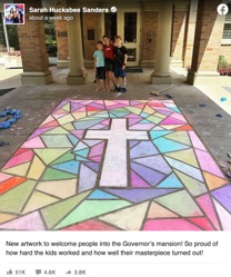 Arkansas Governor Sarah Sanders' Resolute Response to Demands She Remove Kids' Cross Chalk Drawing"...You are asking me to ignore that truth and hide a crucial part of my identity and the identity of my kids. That I will not do." -Gov. Sarah Huckabee Sanders in letter to AU