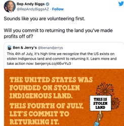 Critics Have a Scoop for Ben & Jerry's: US Not Built on 'Stolen' Land"The idea of going back nearly two centuries later and declaring all these sales invalid was almost unthinkably audacious. [N]othing suggested that the tribes had been under duress at the time, had been anything other than eager to sell the land, or had received less than due value for it." -from the City Journal article "Give It Back to the Indians?"