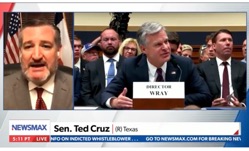 [Newsmax.com] The United States is witnessing the "most partisan and politicized" FBI and Department of Justice the country has ever seen, Sen. Ted Cruz told Newsmax in comments coming after FBI Director Christopher Wray's testimony before members of the House Judiciary Committee. (Screengrab image)