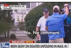 [FoxNews.com] A Hawaii Democrat criticized ...Biden's response to reporters' question about the deadly fires in his state as "shocking" and "quite disappointing." ... "I campaigned for you. Now, when I lose dozens of my friends, family, and neighbors. This?" [former Hawaii state Rep. Mark Kaniela Ing] wrote in a now-deleted post. "When things like this happen, it's really the time to—if you do the kind of work I do, when the wave crests, you've got to paddle hardest," he said. "When tragedies like this occur, it's shocking to see people just conducting business as usual. ... On the one hand, you don't want everyone to be in a perpetual somber mood, but on the other hand, how can you just carry on like that?"... Subscribe for free to Breaking Christian News here Click Here to read. (Screengrab image)