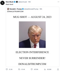 President Trump Returns to Twitter (X) with His Mugshot as His First Post; Gets OVER 120 Million Views and Counting