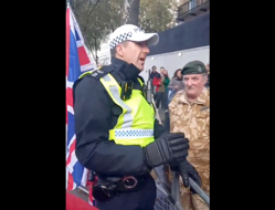 (London, England) — [ToddStarnes.com] British military veterans who showed up in uniform to protest at a pro-Hamas rally in London were ordered by police to take down the Union Jack—the official flag of Great Britain. Another group of men displayed the official national flag of England. But police told the men that displaying the flag could be considered a hate crime at the Muslim rally. The police explained that there were more Muslim protesters than there were police. Meanwhile, Jews were told they could not pray in public because it might offend the Muslim mob. Video below shows Jews chanting, "Let us pray." There was yet another incident where police showed up to arrest a man who posted a video complaining about Palestinian flags being flown in his neighborhood... Subscribe for free to Breaking Christian News here (Screengrab image)