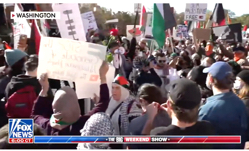Tens of thousands—some unofficial reports estimate 100,000—pro-Hamas demonstrators from all over the US gathered near the White House on Saturday, denouncing Biden's show of support for Israel and demanding that he cut their army off at the ankles as they prepare to root Hamas militants out of northern Gaza. Some demonstrators carried signs implying they worked for Congress or the Biden administration. The Palestinian national anthem blared at a massive rally in Freedom Plaza, southeast of the White House, site of the national World War I memorial. "It is right to rebel! Israel can go to Hell!" said one speaker, Marte White with Community Movement Builders, who insisted that Palestinians have a right to fight "by any means necessary ... and I do mean any means necessary!" Another speaker, representing the US Palestine Community Network's Chicago Chapter, claimed, "Israel does not have the right to exist as a racist state." Nihad Awad, executive director of the Muslim Council of American Islamic Relations (CAIR), threatened that Muslim Democrats will refuse to vote for Biden in 2024 if he fails to obtain a ceasefire. "No cease-fire, no votes!" chanted the crowd. "In November, we remember!" "I've heard a lot of people in the states criticizing the way that Israel is going about this, but I haven't heard those same people give any actual suggestions of what Israel should do," war correspondent Chuck Holton, who is on the ground in the Middle East, said on "Washington Watch." "And it makes one think that they just believe Israel ought to just lay down and die." "Israel is not disposed to do that in any way, shape or form," Holton added. "The soldiers who are going to go do the fighting ... keep saying, 'Ceasefire? We haven't even started fighting yet.'" Although the protest was nominally anti-Israel, many of its attendees manifested a hatred toward Jews in general. As The Washington Post interviewed one anti-Israel Jewish New Yorker at the rally, they recorded, "a protester walked by and told him, 'See you in Hell.' After the rally, a large crowd moved to Lafayette Park, north of the White House, which was the site of nightly stand-offs between Black Lives Matter rioters and Secret Service police in the summer of 2020. A demonstrator wearing a keffiyeh scarf climbed partway up the White House fence and waved a Palestinian flag above it. Other demonstrators, similarly garbed, stuck Palestinian flags through the fence and waved them from side to side. The demonstrators demanded that ...Biden force Israel to accept an immediate ceasefire in Gaza. However, their chants struck a most hostile and militant tone. They chanted, "Allahu akbar," "F*** Joe Biden," "From the river to the sea, Palestine will be free," and "Long live the Intifada." Demonstrators plastered the fence with posters depicting Gazan civilians who have died in the aftermath of Hamas' October 7 terror attack on Israeli civilians. The posters provocatively described the victims as "Murdered by Israel," despite evidence that Israel goes to great lengths to avoid civilian casualties, while Hamas actively places civilians in harm's way. Some protestors taped a giant banner up to the White House fence, blocking the view of Secret Service officers on the north lawn, prompting them to momentarily step forward and tear the banner down while protestors shouted "shame" and cursed the officers. The protestors smeared red paint on the White House fence and pushed on the gates. One reporter on the scene said, of all the protests he has observed, "this one was distinguished by the defacing of the gate and pushing on it. ... When gates were swaying tonight, one protester said to me, 'It's going to be all over' if they were to open. In the moment, it wasn't hard to imagine hundreds going through the gate."