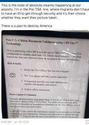 Welcome to Biden's America—where law-abiding American citizens are treated like criminals and illegal aliens are treated like royalty. Dave Rubin, the political pundit, snapped a photograph of a sign posted at an airport alerting illegals that they did not have to have documentation to board a jetliner. Official TSA Sign: TSA is partnering with CBP to test the use of CBP One at certain TSA checkpoints to validate adult non-US citizen travel documentation when the traveler does not otherwise have an acceptable form of identification. How it works: 1. Notify the TSA officer that you are a migrant. 2. The TSA officer will take a photo (optional). 3. If requested, provide your alien identification number or biographic information. 4. Follow officer instruction. Photo capture is voluntary. You may decline to have your photo taken. If you do not wish to have your photo taken, please notify a TSA Officer. You must still provide your alien identification number or biographical information to the TSA Officer, even if you do not have your photo taken. CBP One only verifies the information you previously provided to CBP and will not store your information. Because your information is verified through CBP One, TSA will also not store your information as part of this process. "There is a plan to destroy America," Rubin wrote on X. "This is the state of absolute insanity happening at our airports." Here's the rule for American citizens who want to pass through a TSA checkpoint: "You will not be allowed to enter the security checkpoint if your identity cannot be confirmed, you choose to not provide proper identification or you decline to cooperate with the identity verification process." Gov. Mike Huckabee, a regular guest on the Todd Starnes Show, was just as stunned. "Are Biden & Dems determined to destroy America by making US citizens subject to body searches but letting people who violated law & illegally entered USA travel w/o so much as taking a photo? Hey, goobers in the media–this is why we support Donald Trump," he wrote. Subscribe for free to Breaking Christian News here