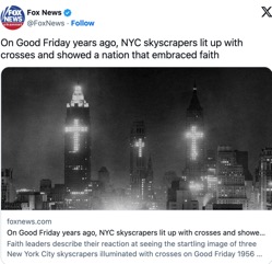 [TheGatewayPundit.com] An image of skyscrapers with windows illuminated in the shape of a cross to commemorate Good Friday in 1956 is making the rounds on social media and reminding people the US once largely embraced the faith—even in New York City. (Screengrab image: via X-Fox News)