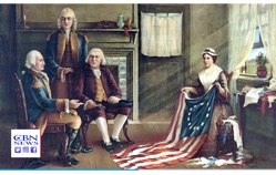 Click Here to watch the CBN News video report on Betsy Ross He continued, "And then when we look at blue, it's perseverance, vigilance, and justice. We will not give up. As has been said, the price of liberty is eternal vigilance. We persevere in what's right. That's what the colors mean...red, white, and blue." Now, these Founders needed someone to sew their flag. George Washington knew Betsy from Christ Church, which both sometimes attended, near her house. He and some of the other Founders came to her Philadelphia home. How Ross Talked the Founders Out of 6-Pointed Stars Lillback said of that meeting, "They come and they say to single mom Betsy Ross, 'We need lots of flags and we'd like to have lots of stars. And we want them to have six points.'" Many think the six-pointed star symbolized the spur of a nobleman. There were six-pointed stars on Washington's personal coat of arms. Lillback says this professional seamstress gave it to the delegation straight. "And she looked at that and said, 'Gentlemen, you need to realize it's very, very hard to cut six-pointed stars. Lots of work. You're going to need lots of stars on lots of flags. It's going to cost you lots of money," Lillback explained. "And then she took a piece of cloth, folded it, and with a snip, out came a five-pointed star. She said, 'If you'll do this, you'll save a lot of money and a lot of time.' They said, 'It's a deal.' And so Betsy Ross is the one who gives us the five-pointed star that's famous all over the world: the American star," Lillback summed up. She Never Put Down the Needle & Thread Betsy Ross didn't just sew the first American flag, she went on sewing American flags for the US government for more than 50 years. Most of that time was right in the house on that Philadelphia street. It's now where a large gravestone outside memorializes her and her unique contribution to America's great symbol.
