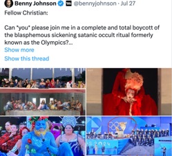 "The Olympic Games have always brought me so much joy. It's the best of the best athletes in the world competing for the title," she said. "So to watch such an incredible and wonderful event that's going to take place over the next two weeks and see the opening ceremonies completely blaspheme and mock the Christian faith with their interpretations of the Last Supper was disgusting. And it made me so sad." But she went on to add a positive twist, sharing, "God loves each and every one of you and His desire is for you to know Him. I won't stop praying and calling on Jesus' name. Share the Gospel message. Let this be an encouragement to be bold in your faith. Let us rend our hearts back to God, father of Abraham. Let us pray. And pray for the Christian athletes to shine their light for the glory of God." Subscribe for free to Breaking Christian News here View social media posts, click HERE and scroll down. Benjamin Gill oversees internet and social media content as the Multimedia Manager for CBNNews.com.