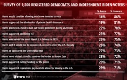 Exclusive MRC POLL: Most Dem Voters Don't Know About Kamala Harris' RadicalismIn fact, a detailed Media Research Center examination of ABC, CBS and NBC evening news coverage in the three weeks since Harris became the leading Democratic candidate (July 21 to August 10) shows eight of these ten issues received ZERO attention from these newscasts, while two others received only minor coverage.