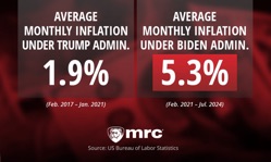 In contrast, prices have already risen more than twice as much, 19.4%, in just 42 months under Biden. More than three-fourths of the way through his term, the CPI has risen from 262.518 in January of 2021 to 313.534 last month (July 2024), putting it on pace to increase three times as much as it did during Trump's full, four-year term. On a monthly basis, inflation averaged 1.9% under Trump, compared to 5.3% under Biden, thus far. Subscribe for free to Breaking Christian News here