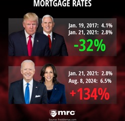 The Biden-Harris Economy after 42 Months: Six Charts the Media Don't Want You to SeeMortgage rates today are more than twice the average rate home buyers paid when Trump left office, Freddie Mac data reveal...