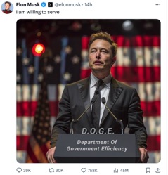 Elon has since responded to the comments by stating that he is "ready to serve," posting an image of himself as the head of the Department for Government Efficiency... Subscribe for free to Breaking Christian News here