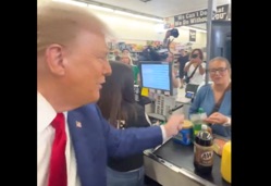 [Breitbart.com] ...President Donald Trump visited a grocery store in Pennsylvania on Monday where he gave $100 to a struggling mother of three. The former president was visiting the Sprankles grocery store in Kittanning, Pennsylvania, when he turned to a mother at the checkout stand to give her a little gift. "Here, it's going to go down a little bit," the former president said, referring to her grocery price tag. "It just went down $100 bucks"... Subscribe for free to Breaking Christian News here Click Here to read and watch the video. (Screengrab image: via X)