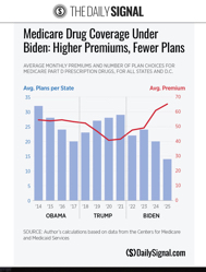 The White House later clarified: "He meant to say that he beat big pharma." But seniors' wallets are taking the beating. Changes made to Medicare's prescription drug coverage by the Biden-Harris administration and congressional Democrats—with not a single Republican vote—as part of the so-called Inflation Reduction Act are sending premiums sky-high, eliminating plans for at least 3 million seniors, and making it harder to access medications. The data shows that under four years of Biden-Harris administration policies (plan years 2022 through 2025), the national average monthly premium paid by Medicare beneficiaries for stand-alone Part D prescription drug plans has increased by 57%. At the same time, the average number of plans offered in each state has dropped by more than one-half, from 29 in 2021 to just 14 in 2025. Seniors in some states face even bigger hits to their wallets. Under the Biden-Harris administration, Medicare drug plan premiums jumped by more than 90% in 10 states. Premiums more than doubled in three of those states (California, 122%; New York, 116%; and Nevada, 104%).