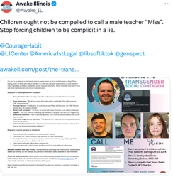 [TheFederalist.com] An Illinois K-5 school's male library director started publicly wearing female clothes Wednesday and insisting students call him "Ms. Madison Sabovik." Until then, the former fourth-grade teacher had been known to students as Mr. Steve Sabovik. Parents were alerted to the librarian's impending transsexual exhibition in a letter Owen Elementary sent two days before it happened, Oct. 20. Many parents pulled their children from the elementary this week, at least temporarily. ... "A five-year-old does not have the constitution to rationalize this. They know that's a man and you're telling them to treat him as a woman? That's a lie. You're teaching them to blur the boundaries and disrespect the truth. This is not good for children..." Subscribe for free to Breaking Christian News here Click Here to read. (Screengrab image: via X)