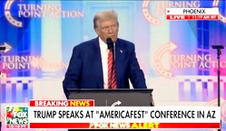 [NYPost.com] President-elect Donald Trump has vowed to immediately stop "transgender lunacy" and make it "official policy " to only recognize two genders, male and female. "With the stroke of my pen on day one, we're going to stop the transgender lunacy," Trump told supporters at AmericaFest 2024 in Phoenix, Arizona, on Sunday, according to a video shared by C-Span. "I will sign executive orders to end child sexual mutilation, get transgender out of the military and out of our elementary schools and middle schools and high schools," he said... Subscribe for free to Breaking Christian News here Click Here to read and watch the video clip. (Screengrab image: via Fox News /NY Post)