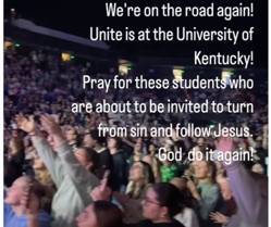 "It's hard to believe. This keeps happening. It is insane," said Unite US speaker and founder of IF:Gathering Jennie Allen. Unite US was birthed out of a desire to "lift the name of Jesus." It all began at Auburn University's Neville Arena in September 2023 where 5,000 students showed up to worship Jesus and 200 were spontaneously baptized in a nearby lake. And now, the organization hosts massive worship events making waves on college campuses across the country. Collectively, those events have brought in more than 70,000 college students. Their first stop in 2025 was the University of Kentucky, just 30 minutes from Asbury University where the first sparks of a new spiritual awakening were seen among American students in February of 2023. This time, more than 8,000 students packed Rupp Arena to worship Jesus and to hear a powerful message on the Gospel. "Every time they are confessing their sin, they are yelling it out. They are responding to the Gospel in herds. Like droves of kids are coming forward to receive Jesus," said Allen. "We are baptizing kids for an hour and a half. [They are] giving their lives to Jesus." "It is only God," she added. "There is a movement amongst students that you can't believe. And even when you see it, you can't believe it!" CBN's Abigail Robertson was there, and she attests to the almost indescribable move of God that took place on the campus. "I've never seen anything like what happened last night. Kids lining up to get baptized in 30-degree weather—it's truly amazing what's happening," she shared. According to the event's organizers, it is an event that they have been praying about for months. "Our local student team organized weekly prayer gatherings and walked up to 42 miles one Saturday as they prayed over their campus," the founder and visionary behind Unite US, Tonya Prewett, told CBN News. "'Jericho Marches,' they called these Saturday prayer walks and we saw walls come down last night," she added. "We've been praying for this night for months, and God met us here again," reads a post on social media. "We know it's just the beginning of all He has in store." "You get so tired of the enemy and his attacks, that you will do anything. Even if it costs everything. Many times God will use our deepest pain to propel us into our deepest purpose," she shared. The night ended with hundreds of students making a public declaration for Jesus Christ, followed by water baptisms. And as each person rose out of the cool waters, cheers erupted from the crowd because another life was counted for the Kingdom of God. "He did it again. Except for He did it bigger than He's ever done it," said Unite US speaker and Pastor Jonathan Pokluda of Harris Creek Baptist Church in Waco, Texas. "It was just crazy," he said. "All the aisles and the altars [were] just full of people. Literally thousands [of] college students came forward to give their lives to Jesus. My legs are sore, my arm is sore from baptizing people. And we say thanks to God. Praise be His Name." Unite US is bucking the claims that GenZ is spiritually apathetic. "I think we're a generation of critical thinkers, and I think we're a generation of authenticity, and we're a generation of vulnerability," Trosper Buchanan, a junior at UK, told NBC News affiliate LEX-18. "I've seen and, and experienced firsthand, the death and the depravity that is disguised as the college experience. We're just taught like this is what fulfills you and then this is life and then we, we take it and it kills us, and we're like, 'Well I guess, I guess something's wrong with me,'" he continued. Dr. Sarah Baldwin, Vice President of Student Life at Asbury University, was at Asbury two years ago when a revival hit the campus that lasted several weeks. She told the outlet that GenZ is waking up to their true identity in Christ. "The students are recognizing that like, 'no, this is what I was designed for; this is the purpose that was set aside for me, this is the life... this is the love that Jesus has for me.'" And events like Unite US are serving as a catalyst across many of those college campuses. "Revival is here," Allen said. "We're not pulling teeth. We're not doing magic tricks. We are just there responding to the Gospel. They want God. And it is so beautiful." Subscribe for free to Breaking Christian News here Talia Wise has served as a multi-media producer for CBNNews.com, CBN Newswatch, The Prayer Link, and CBN News social media outlets.
