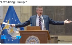 [ChristianPost.com] Midshipmen at the US Merchant Marine Academy erupted in raucous applause last week when Secretary of Transportation Sean Duffy called for a painting of Jesus to be brought up from the flood-prone basement where it was placed during the Biden administration. ... "Can we bring Jesus up from the basement?" he asked, looking to the USMMA administration. "Let's not put Jesus in the basement! Let's get Him out! Let's bring Him up! You want Jesus up from the basement? Alright, great!" he said. "That was the loudest applause we got!"... Subscribe for free to Breaking Christian News here Click Here to read and watch the video clip. (Screengrab image: via X-Jon Brown)