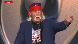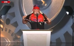 The wrestling legend ripped his shirt off during a Trump inauguration party. (Screengrab image: via YouTube-Fox)