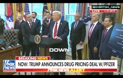 [WhiteHouse.gov] ADVANCING MOST-FAVORED-NATION PRICING: [Tuesday, Sept 30], President Donald J. Trump announced the first agreement with a major pharmaceutical company, Pfizer, to bring American drug prices in line with the lowest paid by other developed nations (known as the most-favored-nation, or MFN, price). (Screengrab image: via Fox News /Overton News)