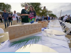 Christians Fill Mile-Long Communion Table on National Mall: 'Nothing but the Blood of Jesus'The Communion table on the mall stretched for a mile between the Washington Monument and the US Capitol. It was adorned with symbolic place settings fit for Jesus, the King of kings. Here, friends and strangers came together as one. After taking communion they shouted and cheered for Jesus. ... Their message to America is that a united Church can heal a divided America...