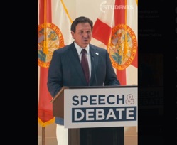 [RSBNetwork.com] Governor Ron DeSantis, R-FL, announced Monday that the state of Florida is partnering with Turning Point USA to ensure that all "Club America" chapters on high school campuses can launch without any impediments or holdups. Districts or schools that oppose the launch of these clubs in Florida, Gov DeSantis said, will receive a warning before they "drop the hammer." ... "Let me be very clear if you haven't received the message already: If you are a hurdle, if you get in the way of any student or teacher trying to start a Turning Point USA chapter, you will be met with the full force of the law," said Florida Commissioner of Education Anastasios Kamoutsas... Subscribe for free to Breaking Christian News here Click Here to read. (Screengrab image: via X-TPUSA-Students)