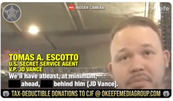 [TheGatewayPundit.com] The O'Keefe Media Group on Tuesday released video of a Secret Service agent assigned to JD Vance leaking sensitive information to an undercover reporter. (Screengrab image: via X-James O'Keefe) The agent at the center of O'Keefe's latest sting, Tomas Escotto, is a Biden holdover and has only been a US citizen since 2018. Escotto told the O'Keefe Media Group undercover reporter details about how Vance is surrounded and revealed advanced security procedures. The Secret Service agent also revealed Vance's future travel plans and sent images from Air Force Two while he was traveling with Vance. Tomas Escotto said he voted for Joe Biden and opposes the Trump Administration's ICE operations. According to James O'Keefe, Escotto was placed on administrative leave and his security clearance was suspended... Subscribe for free to Breaking Christian News here Continue readingĀ Here.