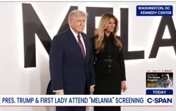 [Newsmax.com] First lady Melania Trump marked another high-profile moment Thursday night with the premiere of her self-produced documentary "Melania" at the Trump-Kennedy Center for the Performing Arts in Washington, DC, kicking off its nationwide debut ahead of Friday's theatrical and global release. (Screengrab image: via C-SPAN)