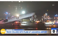 [Breitbart.com] An Air Canada flight crashed into a Port Authority fire truck at LaGuardia Airport on Sunday night, causing severe damage to the front of the aircraft. Two pilots were killed in the incident and 41 others sent to hospital in the horrific crash that obliterated the front of the Bombardier CRJ-900 jet and forced the major travel hub to close for most of Monday, the NY Post reports... Subscribe for free to Breaking Christian News here Click Here to read. (Screengrab image: via ABC News video)