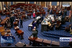 [NewsNationNow.com] Senate Republicans adopted a budget resolution during a late-night voting marathon that lasted until early Thursday morning, setting the stage for Congress to vote next month on a budget reconciliation package to fund immigration enforcement and reopen the Department of Homeland Security (DHS). The resolution passed by a vote of 50-48 shortly after 3:30 a.m. Thursday. GOP Sens. Lisa Murkowski (Alaska) and Rand Paul (Kentucky) joined all Democrats in voting against the measure. GOP senators mostly stuck together to beat back Democratic amendments that could have derailed the budget resolution, but two... Subscribe for free to Breaking Christian News here Click Here to read. (Screengrab image: via C-SPAN)