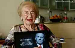 [JNS.org] Mimi Reinhard, a secretary in Oskar Schindler's office who typed up the list of Jewish men, women and children to be saved from death by Nazi Germany, died in Israel on Friday at the age of 107. (Screengrab image)